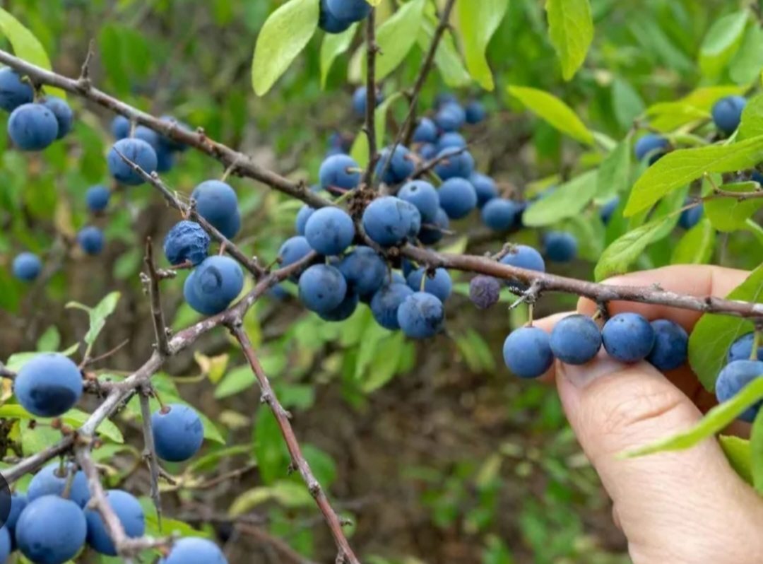 Fruits du prunellier, ces petites baies bleutées se cueillent en hiver sur les haies épineuses.